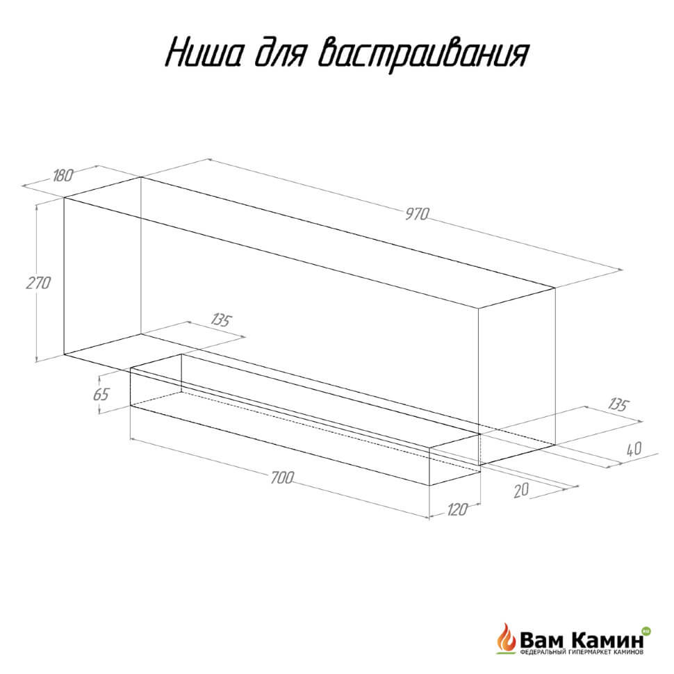 Встраиваемый биокамин FLAGMAN 1000 Шлифованный предназначен для встраивания в глухие ниши из гипсокартона, кирпича, пеноблоков, бетона.