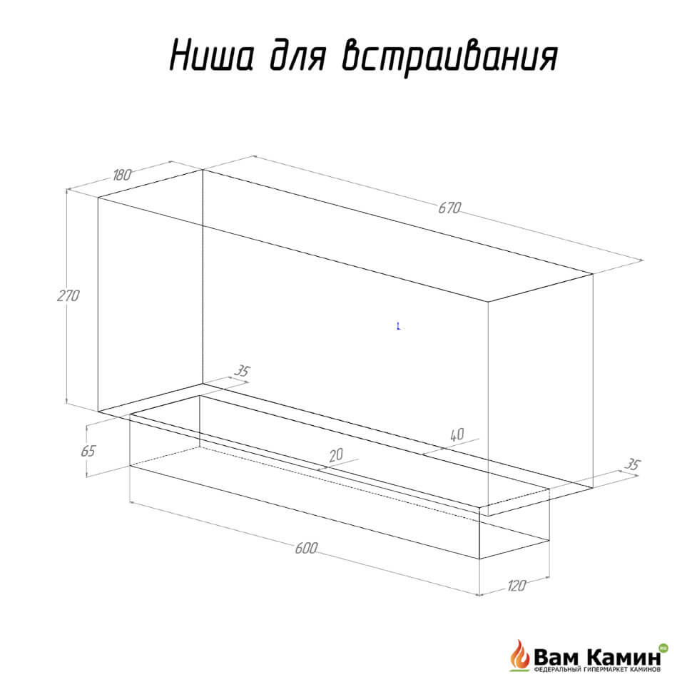Встраиваемый биокамин FLAGMAN 700 XL предназначен для встраивания в глухие ниши из гипсокартона, кирпича, пеноблоков, бетона.